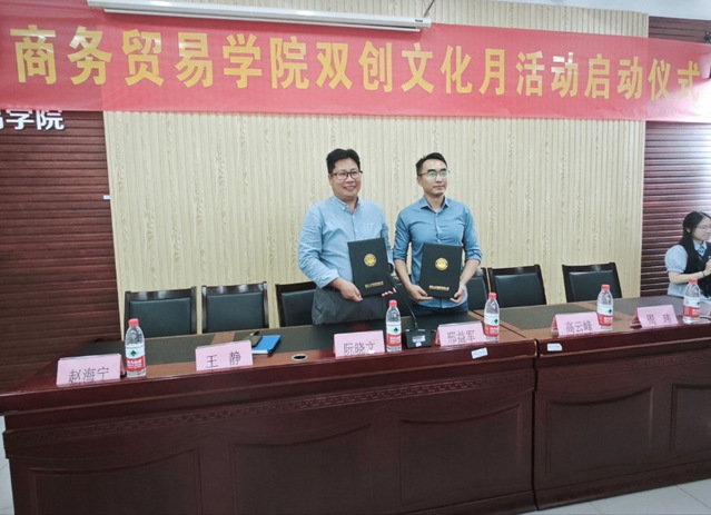 5月7日下午,商务贸易学院双创文化月正式启动。学院党委书记邢益军、院长阮晓文、副书记王静、副院长周玮,南京泽鸣电子商务有限公司总经理高云峰、南京鸿鑫出海电子商务有限公司总经理李钊瑾、连云港创写文化传媒有限公司负责人出席此次活动,与学院师生齐聚一堂,共同见证双创实践、校企合作重要时刻,共话创新发展新蓝图。