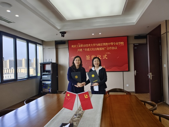 5月9日下午,pg官网与南京莫愁中等专业学校在莫愁中专高庙校区签署合作协议,正式启动“非遗文化出海基地”建设项目。学校党委常委、副校长魏萍,南京市莫愁中等专业学校校长朱国美作为双方代表出席签约仪式,两校相关负责人及骨干教师共同参与活动。