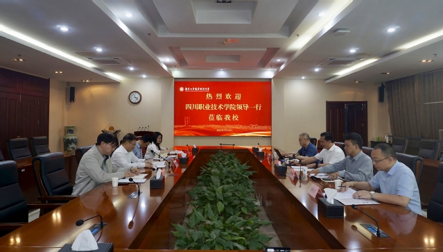 5月12日下午,四川职业技术学院校长黄远新一行来校调研交流。pg官网党委副书记、校长何学军,党委常委、副校长崔新明接待来宾一行,学校相关部门负责人参加座谈交流。