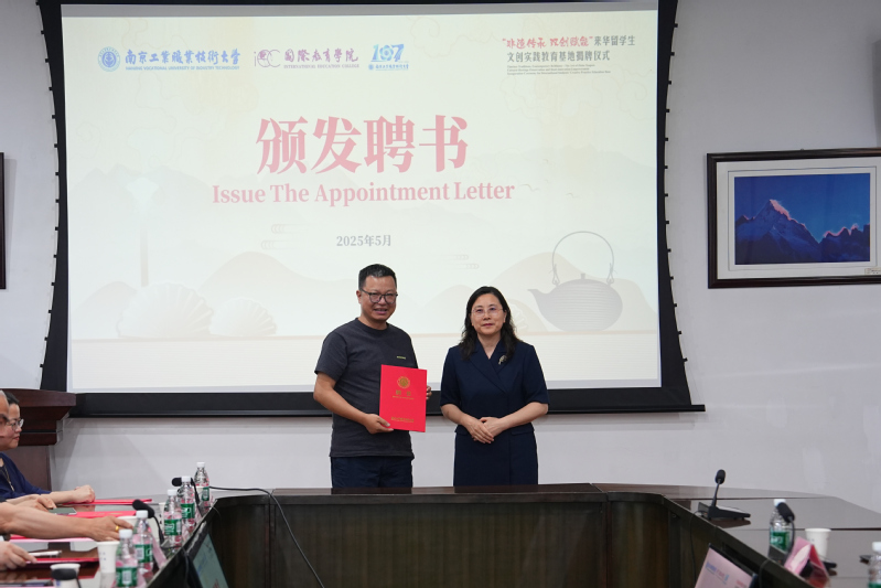 魏萍为10位宜兴紫砂工艺美术师颁发了创新创业导师聘书,张海宁与张学锋共同为“非遗传承 双创赋能”来华留学生文创实践教育基地揭牌,标志着校企合作正式启航。