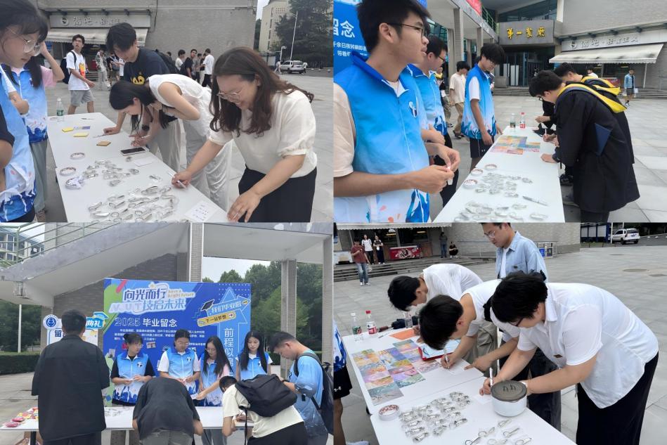 学院在学生社区精心打造主题展,现场陈列着毕业生大学四年的学习生活照片、获奖证书、手写笔记等实物展品,一张张照片串联起从青涩入学到成熟毕业的蜕变轨迹。往来学生驻足停留,在岁月的切片中感受成长的重量。与此同时,“寄语墙”成为情感交流的枢纽,在校生纷纷写下对学长学姐的祝福,真挚的话语承载着跨年级的温暖情谊。