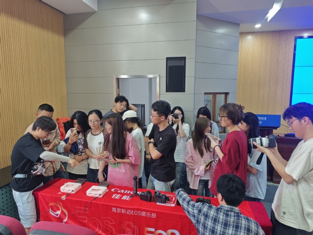 讲座结束后同学们积极响应,尝试了由佳能提供的各种相机。 现场工作人员耐心指导学生如何正确使用佳能相机,并且贴心地给同学们提供照片打印服务。