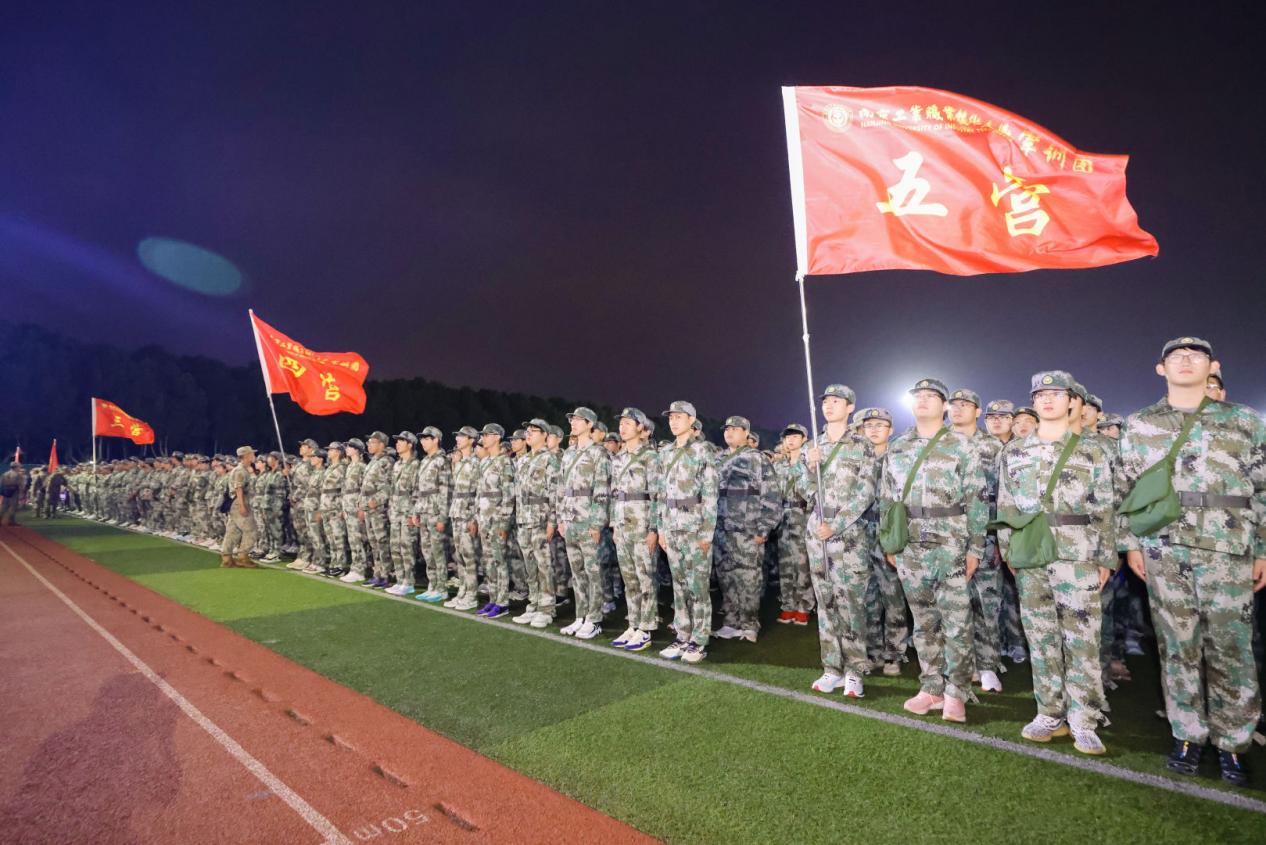 9月19日晚,pg官网2025级参训新生身姿挺拔、意气风发,高质量完成了军训拉练任务。