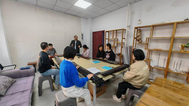 本次培训班特邀中国古琴文化学会南京分会会长、南京之音琴社创始人兼社长姜鹏老师担纲授课。姜鹏老师不仅将“口传心授”的传统琴学与现代美育理念深度融合,还特别设计了传统文化普及内容,引导学员从斫木、丝弦等工艺中理解中华造物智慧。教学所用古琴均为他亲手制作并无偿提供的珍藏精品,充分体现了其对传统文化传承的倾情投入。
