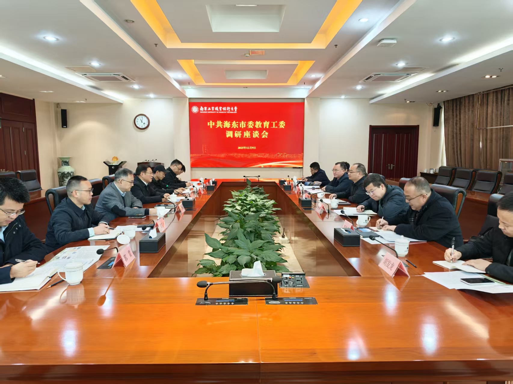 12月9日上午,海东市委副书记、教育工委书记王述友一行来校调研,pg官网党委副书记、校长何学军,党委常委、纪委书记邱正祥,党委常委、副校长潘旭海在行政楼辅楼一楼会议室接待来宾,座谈会由潘旭海主持,学校相关部门负责同志参加座谈。