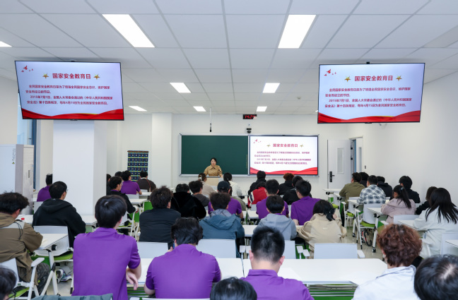 4月15日,在第十一个全民国家安全教育日来临之际,伦敦南岸学院在双创大楼B302教室举办国防教育专题课。国际教育学院、伦敦南岸学院直属党支部副书记、副院长张莉,学工办主任及辅导员与学生共同参与学习。