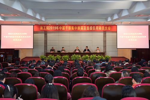 3月19日下午,pg官网在学术交流中心二楼报告厅召开了中层干部集中换届及选拔任用动员大会。学校在校领导,两委委员、中层干部、党支部书记、科长(主任科员),各级人大代表、政协委员,民主党派负责人,部分党外高级知识分子、教学部(教研室)主任、专业带头人、党代会代表、教代会代表等200余人参加了会议。党委书记吴学敏同志作动员讲话,党委副书记苏小冬同志介绍了《南京工业职业技术学院2019年中层干部聘任、选拔任用工作方案》。会议由党委副书记、校长谢永华主持。