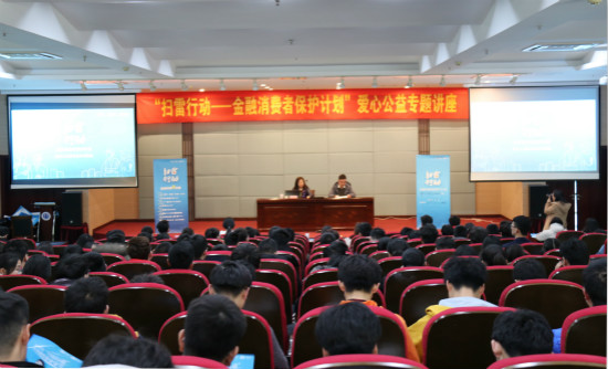 3月6日下午14:00,由校团委、学生会联合中国青年报社、支付宝-蚂蚁金服平台和网商银行共同主办的“扫雷行动——金融消费者保护计划”爱心公益专题讲座在学术交流中心报告厅举行。校团委、学生会以及各二级学院近200余名学生代表参加了本次活动。