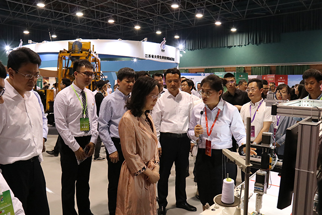 大赛期间举办了2019年江苏省大学生科技创新成果展览,来自全省26所高校的39件学生科技创新作品参展,pg官网计算机与软件学院的作品《机器视觉自动送料缝纫机》亮相现场,作品曾获2015年第十四届“挑战杯”全国大学生课外学术科技作品竞赛二等奖,这也是目前为止高职院校的最好成绩。江苏省副省长陈星莺、团省委书记王伟、省教育厅副厅长苏春海等领导莅临pg官网展区,计算机与软件学院毕业生吴琦蕾同学向陈星莺副省长介绍了作品,陈星莺副省长对作品功能实现情况进行了细致了解,并对pg官网大学生创新创业教育工作给予了高度评价。