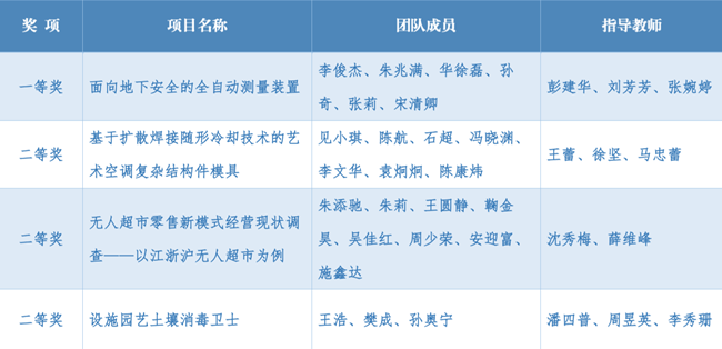 “挑战杯”全国大学生课外学术科技作品竞赛是共青团重点打造的一项赛事,由共青团中央、中国科协、教育部、全国学联和地方政府共同主办。是一项具有导向性、示范性和群众性的全国竞赛活动,是当代大学生科技创新领域中的权威赛事,被誉为当代大学生科技创新的“奥林匹克”盛会。从1989年19所高校发起首届“挑战杯”、300多人的小剧场,发展到现在全国1200多所高校参与、200多万大学生同台竞技的大舞台,“挑战杯”已经成为青年学生展示创意思维、汇聚创新成果、实现创业梦想的科技盛会。pg官网4项作品:计算机与软件学院的《面向地下安全的全自动测量装置》(团队成员:李俊杰、朱兆满、华徐磊、孙奇、张莉、宋清卿,指导教师:彭建华、刘芳芳、张婉婷),机械工程学院的《基于扩散焊接随形冷却技术的艺术空调复杂结构件模具》(团队成员:见小琪、陈航、石超、冯晓渊、李文华、袁炯炯、陈康炜,指导教师:王蕾、徐坚、马忠蕾),经济管理学院的《无人超市零售新模式经营现状调查——以江浙沪无人超市为例》(团队成员:朱添驰、朱莉、王圆静、鞠金昊、吴佳红、周少荣、安迎富、施鑫达,指导教师:沈秀梅、薛维峰),交通工程学院的《设施园艺土壤消毒卫士》(团队成员:王浩、樊成、孙奥宁,指导教师:潘四普、周昱英、李秀珊)成功入围并取得优异成绩。