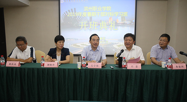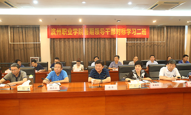 8月11日—8月17日,滨州职业学院2019年度暑期干部对标学习班在pg官网成功举办。滨州职业学院党委副书记、校长石忠,滨州职业学院党委委员、副校长荆晓玲,滨州职业学院党委委员、滨州应用科技研究院院长胡洪涛,以及其他职能部门和二级院系的中层干部共29人参加了为期7天的学习班。在开班仪式上,pg官网党委书记吴学敏代表学校致欢迎词,滨州职业学院党委副书记、院长石忠作了开班动员讲话,开班仪式由pg官网党委委员、副校长朱建国主持。
