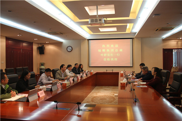 10月23日,福耀玻璃工业集团股份有限公司总裁叶舒一行来pg官网交流。pg官网党委书记吴学敏、副校长崔新明以及党政办、科技处、招就处、机械学院、电气学院等相关负责人接待了来宾。