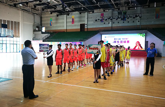 9月5日,在第34个教师节来临前夕,学校工会、团委、体育部在仙林校区体育馆联合举办了南工院第十七届“桃李杯”师生篮球友谊赛。下午3:40,学校党委委员、副校长、全员健身领导小组组长朱建国为比赛发令,比赛正式开始。