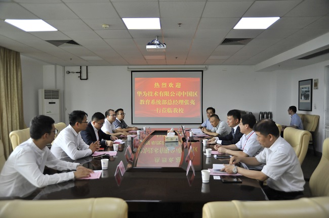 5月19日下午,华为技术有限公司中国区教育系统部总经理张夷、江苏教育行业负责人杨文彬一行来pg官网交流。pg官网校长谢永华、副校长崔新明及科技处、信息化建设与管理处、计算机与软件学院等相关部门负责同志接待了来宾。