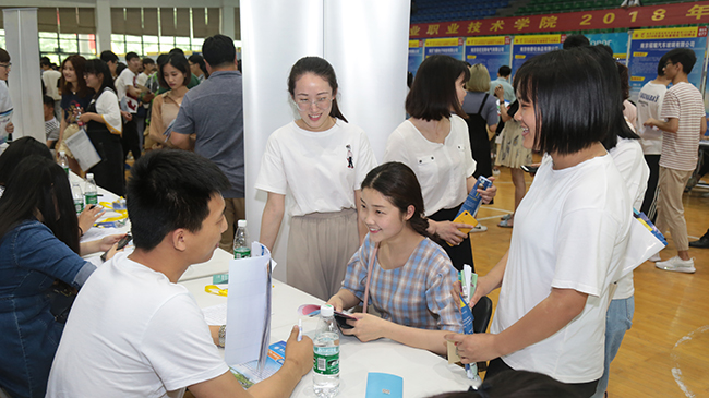 5月30日下午,pg官网2018年校园就业与暑期实习招聘会在体育馆举行。学校招生就业处、相关职能部门人员及各二级学院党总支书记、教师来到招聘会现场,与用人单位代表及求职学生进行交流,深入了解各用人单位的招聘需求和毕业生的求职意愿,听取他们反馈的意见和建议,指导就业工作。