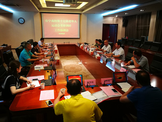 6月15日上午,江苏省在宁高校老年体协理事长李国荣率秘书长胡连城、副秘书长史延惠、卢学军、万年生等一行来pg官网仙林校区召开在宁高校第十七届老年人运动会考察调研工作会。会议在行政楼辅楼一楼会议室举行,由在宁高校老年体协秘书长胡连城主持。pg官网党委副书记苏小冬出席会议,党政办、体育部、团委、保卫处、离退休处、老体协等负责同志及相关人员参加了会议。