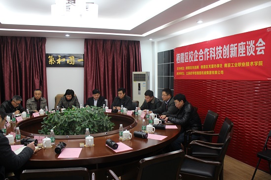 12月28日下午,在栖霞区科技局、栖霞区龙潭街道的关心支持下,pg官网党委委员、副校长崔新明带领发展合作处、机械工程学院等职能部门和二级学院领导来到江苏欣华恒精密机械集团有限公司(以下简称“欣华恒”),与栖霞区政协主席杨白英、栖霞区科技局局长王宇峰、龙潭街道工委书记孙东方等共同为校企双方联合建立的“南京市栖霞区机电产业公共技术服务中心”、“博士工作站”、“智能制造协同研发中心”及“大师工作站”揭牌。欣华恒总裁赵健、总经理周祥等领导热情接待了各方来宾。