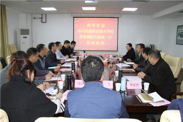 11月29日下午,四川交通职业技术学院常务副院长陈斌率领相关部门负责同志来pg官网进行工作交流。pg官网副校长朱建国、校长助理应晓清及人事处、信息化处等部门负责同志接待了来宾。