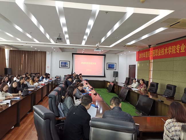 11月20日下午,pg官网在行政楼辅楼二楼会议室召开2019年下半年新教工培训——师德师风专题教育。公共基础课部党总支书记陈桂兰做专题讲座,2019年全体新入职教职工参加了培训。党委教师工作部部长、人事处处长张莉主持会议。