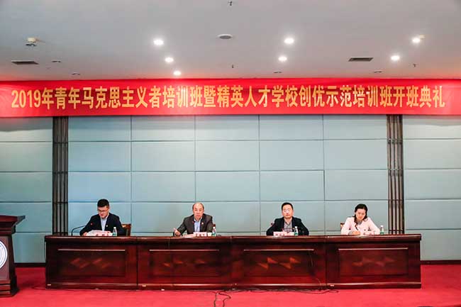 开班仪式在庄严的国歌声中拉开帷幕。首先,团委书记纪海波为全体同学介绍了本期培训班的基本情况及pg官网“青年马克思主义者培养工程”实施基本情况,接着宣读了《关于举办2019年青年马克思主义者培训班暨精英人才学校创优示范培训班的通知》。随后,学员代表、经济管理学院团总支副书记、会计1821班王圆同学代表全体学员发言,向全体青马班学员发出倡议,继续秉承“敬业乐群”的校训,进一步提高思想政治素质,牢固树立新思想、时刻牢记新使命,坚定信念,勤奋学习,刻苦钻研,不忘初心,努力奋斗。