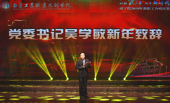 吴学敏书记代表学校党委向广大教职工致以新年的美好祝福和衷心感谢!他回顾了第三次党代会以来学校改革发展的历程,特别是2019年学校取得的主要成绩。他指出,过去一年是学校办学历史中具有里程碑和转折点意义的一年,成为全国唯一的公办本科层次职业学校,开启了南工院新百年“以例示人”的新征程。他强调,南工院今天所取得的一切成绩,是我们全校教职工奋力奔跑、拼搏和努力的结果,是对大家志在必得、苦干实干的最好回报。他号召全体教职工,团结一致、众志成城,奋力擘画本科职业教育更加辉煌灿烂的明天。