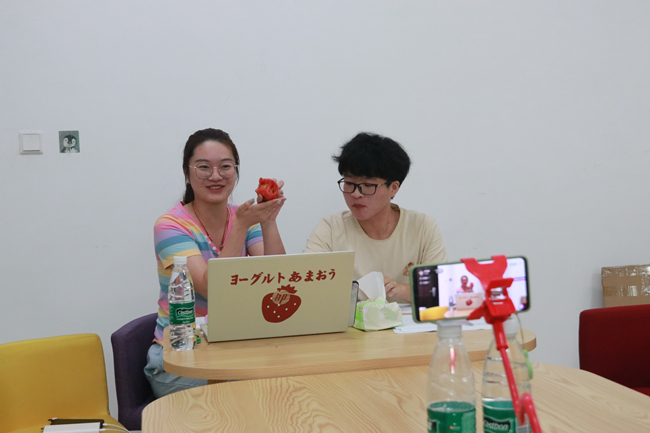 为了确保直播活动顺利进行,自7月初启动仪式开始,学校多次开展了电商直播技能培训会。各学院成员分工明确,精准联系52个贫困县,对接当地农户并收集货源。此外,成员们亲自品尝所收到的农副产品,对所收集到的货源层层把关,并对其口感、功效等方面做了深入了解。通过反复的技能培训、小组讨论与求精,以及试播,最后初步掌握了直播带货技能与技巧。