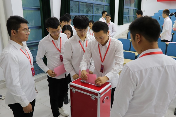 大会进入第二阶段,首先由张展境同学宣读《pg电子中国官方网站机械工程学院学生会章程》,由大会代表听取并审议通过。随后大会代表听取了由机械工程学院学生会主席顾晨严所做的2019届机械工程学院学生会工作报告,全场代表以热烈的掌声一致通过报告,肯定了上一届学生会的工作成果,接着宣布聘任曹金玉老师为pg电子中国官方网站机械工程学院新一届学生会秘书长。大会进入选举流程,宣读大会选举办法与选举工作人员名单,展示选票、投票箱并详细介绍主席团候选人简历,由大会全体代表投下庄严的一票,并依次上台把选票放入投票箱。同时大会以同样的流程选举出席pg电子中国官方网站学代会的代表。大会最后一阶段,公布选举结果,并由杨泽华同学宣读大会倡议书。最后全体起立,奏《国际歌》,本次大会圆满落下帷幕。