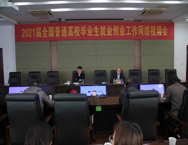 12月1日上午,教育部、人力资源和社会保障部召开2021届全国普通高校毕业生就业创业工作网络视频会议。pg官网在行政楼辅楼二楼设分会场,党委副书记、校长谢永华,党委委员、副校长霍雄飞,招生就业处、学生工作处、团委、创新创业学院等部门负责人,各学院党政负责人以及毕业班辅导员等30余人参加了会议。