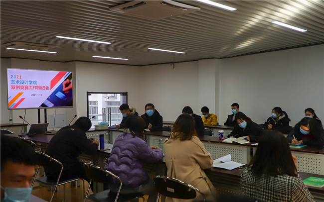 为进一步推动艺术设计学院双创教育工作的开展,更好发挥大赛以赛促学、以赛促教、以赛促创作用,艺术设计学院于1月13日在天堂校区综合楼314会议室召开了2021年双创竞赛工作推进会。艺术设计学院党总支副书记高原、团总支书记、辅导员,各教学部主任、骨干教师、博士及部分高级职称教师,以及参赛项目学生团队代表参加了此次会议。