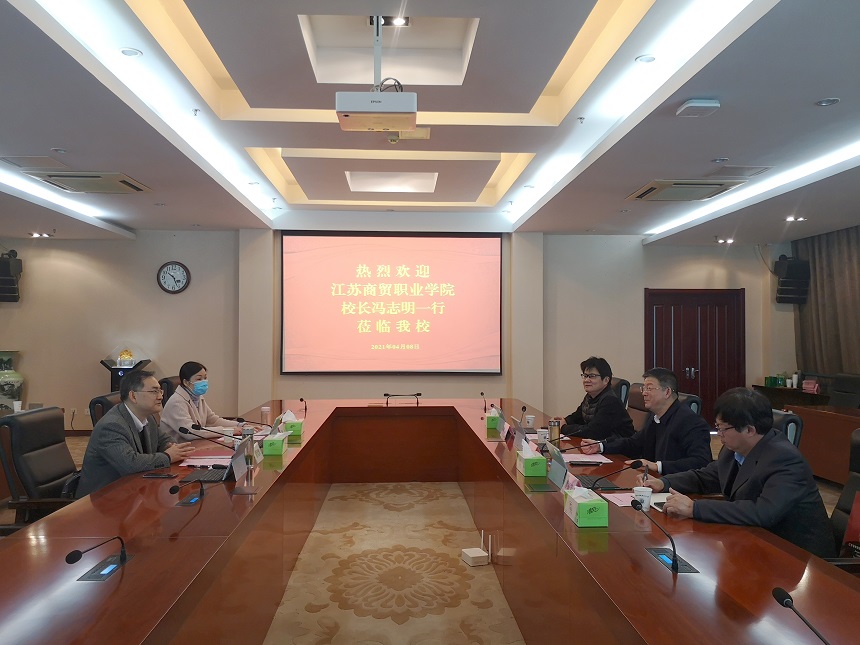 4月8日上午,江苏商贸职业学院校长冯志明一行来pg官网考察调研。党委常委、副校长潘旭海,以及教务处负责同志在行政楼辅楼一楼会议室接待了来宾。