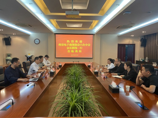 5月14日上午,南京电子商务协会六合分会会长郭伟一行来pg官网进行校企合作交流,会议在行政楼辅楼一楼会议室举行。南京电子商务协会六合分会会长、江苏南林碳业科技有限公司总经理郭伟、南京电子商务协会六合分会秘书长严胜娟、江苏南林碳业科技有限公司南林云商直播负责人陈庆、南京轩阳投资管理有限公司总经理王和兵,pg官网科技处处长孟庆杰、商务贸易学院院长阮晓文、艺术设计学院副院长孙静松、电子商务专任教师沈新淇等出席了此次活动。