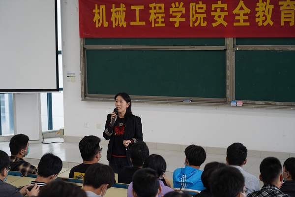 朱楠副大队长长期从事一线刑侦办案和维护校园师生安全工作,在实战中积累了丰富的工作经验,深入剖析了不法分子利用日益发展的通信技术和快捷支付技术在非接触状态下设计的花样繁多的骗局,精准揭露了犯罪分子的作案手法和伎俩,如网络兼职刷单诈骗、“杀猪盘”诈骗、冒充公检法诈骗、网络贷款诈骗等一系列违法犯罪活动,并指导同学们如何防范电信网络诈骗犯罪。他用大量的实例为大家带来了精彩的演讲,具有很强的现实针对性和指导性,让同学们提高安全防范意识,有效保障大家的人身安全、财产安全。讲座最后,机械工程学院党委副书记赵颖再次嘱咐同学们防范电信网络诈骗,同时在宿舍禁止使用违章电器,营造健康宿舍卫生环境,切实保障同学们的校园安全,并要求大家把今天的收获分享给班级的每一位同学。