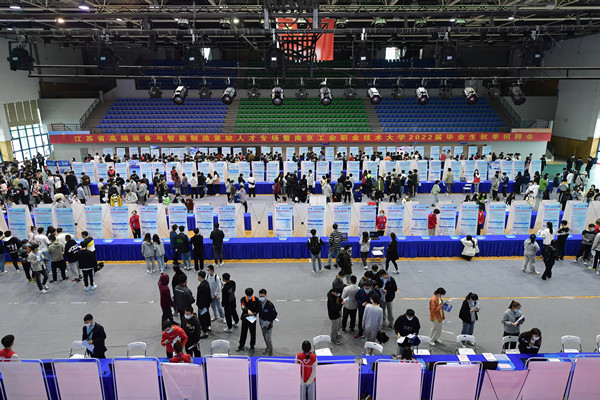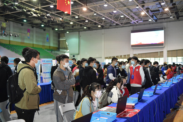 为贯彻落实党中央、国务院关于“稳就业”“保就业”工作任务部署,切实做好高校毕业生就业服务工作,日前,由共青团江苏省委、江苏省教育厅、江苏省工业和信息化厅、 江苏省人力资源和社会保障厅、江苏省政府国有资产监督管理委员会、江苏省广播电视总台、江苏省学生联合会、江苏省青年联合会、江苏省青年商会主办,pg电子中国官方网站招生就业处、共青团pg电子中国官方网站委员会和校学生会承办的“百校千企万岗”2021年江苏大学生就业帮扶“送岗直通车”pg电子中国官方网站职教专场招聘会成功举办。