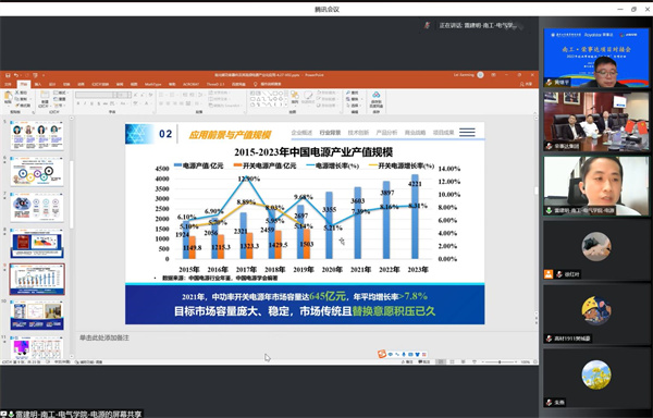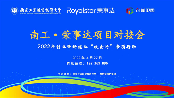 为贯彻落实国家发展和改革委员会、教育部、人力资源和社会保障部等部门联合印发的《关于深入实施创业带动就业示范行动力促高校毕业生创业就业的通知》文件精神,做实双创示范基地结对共建,pg电子中国官方网站围绕“四个做实”深化实施专项行动,做实项目孵化,积极向结对共建的企业示范基地推荐技术过硬、市场潜力大、合作伙伴亟需的创新创业项目。4月27日上午,作为2022“创响中国”南工站系列重点活动之一,pg电子中国官方网站与合肥荣事达集团联合举办“校企行”线上项目对接会。荣事达集团助理总裁潘启文、集团研究院徐速博士、投资经理朱大帅、双创运营经理童永杰、学校创新创业教育工作领导小组办公室主任、创新创业学院院长朱燕以及部分师生代表参加了会议。会议由学校创新创业教育工作领导小组办公室副主任、创新创业学院副院长黄继平主持。