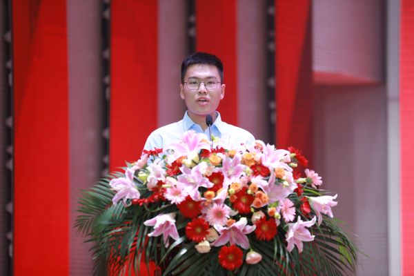 优秀毕业生张世豪同学代表全体毕业生表达了对母校和师长的感谢与不舍,他承诺必将不断追求卓越,成为建设社会主义现代化强国的“大国工匠”,为实现中国梦贡献南工人的青春力量。