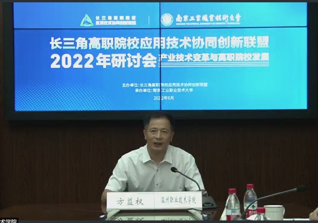 方益权对大会的顺利召开表达热烈的祝贺,并介绍了联盟的性质、宗旨、组成、会员单位等情况。他表示,新修订的《中华人民共和国职业教育法》施行以后,职业教育在全面建设社会主义现代化国家新征程中“大有可为”,联盟将发挥更大作用。他指出,通过健全双师队伍、积极引进博士、建强实训和科研平台、促进协同创新发展,打造样板,带动长三角一体化发展。