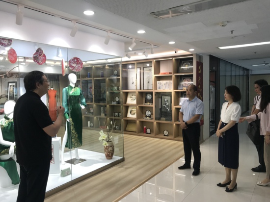调研团参观了苏豪股份面料图书馆、丝绸博物馆、苏豪尚品精品馆等,琳琅满目的面料样本、精美的丝绸精品让大家深刻感受到了大型国企深厚的积淀、实力和魅力。在双方开展交流座谈过程中,陈万宁书记代表苏豪对pg官网来访表示热烈欢迎,副总裁丁海介绍了苏豪的总体情况,并阐述公司“新产品、新业态、新模式、新布局”的“四新”突破与做法、以及公司“有事做、有人爱、有希望”的青年人才培养理念与经验。平焱总经理介绍了企业发展规划与愿景,并着重介绍了企业的人才需求;张培根副书记结合多年的工作经验和国企的要求,对毕业生的政治素质、道德素质、外语能力和专业能力做了重点强调;温金伟董事长分享了苏豪云商公司的“七个一”工作理念,并重点介绍了公司跨境电商业务的开展情况及人才需求;王媛副经理介绍了公司人力资源发展状况、苏豪干部学院“1+10”教育培训模式与具体做法等。