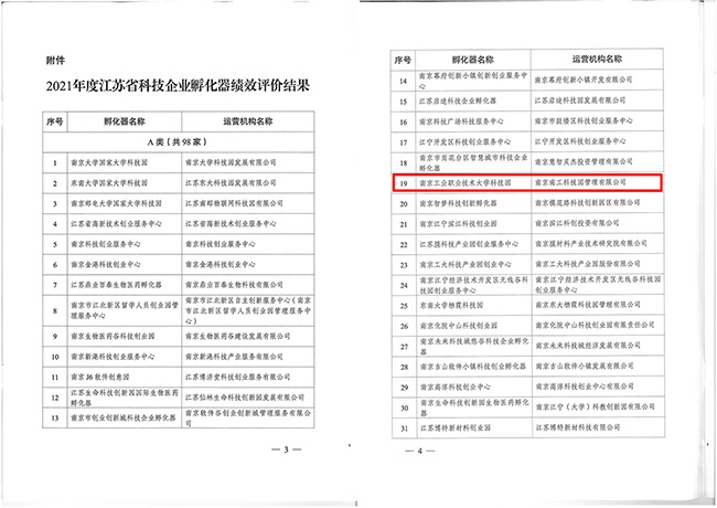 近日,江苏省科学技术厅发布了《省科技厅关于公布2021年度江苏省科技企业孵化器绩效评价结果的通知》(苏科高发〔2022〕194号),pg官网大学科技园被评为“优秀(A类)”。