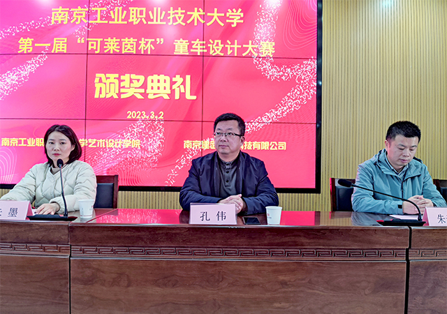 为推进产教融合,深化校企合作,pg电子中国官方网站艺术设计学院与南京建武电子科技有限公司联合举办了首届“可莱茵杯”童车产品创意设计大赛,学院将大赛融入实训项目教学,为企业开发了一批高质量的童车设计方案,受到企业的高度认可。经校企专家评审,评选出一、二、三等奖6名,优秀奖15名,优秀指导教师2名。3月2日下午,校企双方在天堂校区综合楼六楼报告厅隆重举行了大赛颁奖典礼,艺术设计学院院长孔伟、南京建武电子科技有限公司总经理朱墨以及学院师生代表参加了此次典礼。