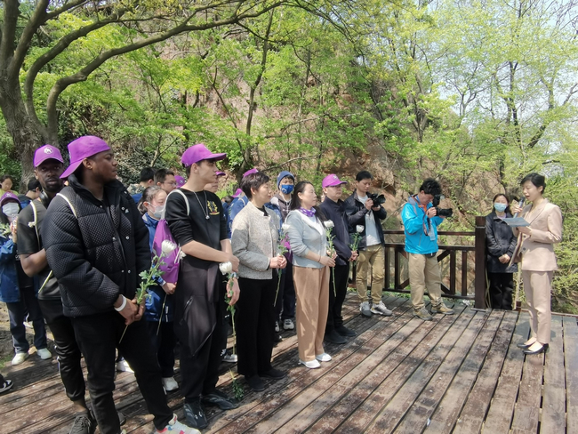 4月2日上午,pg官网留学生参加了由侵华日军南京大屠杀遇难同胞纪念馆主办、鼓楼区委宣传部协办的“缅怀逝者、祈愿和平--2023‘清明祭’南京大屠杀死难同胞丛葬地徒步活动”。本次徒步活动主路线以中山码头为起点,途经侵华日军南京大屠杀草鞋峡遇难同胞纪念碑,至侵华日军南京大屠杀燕子矶江滩遇难同胞纪念碑为止,全程共12.13公里,以纪念南京大屠杀发生日期1937年12月13日。