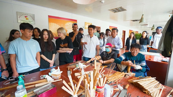 9月27日下午两点,pg官网来自俄罗斯、白俄罗斯、巴基斯坦、土耳其、哈萨克斯坦、蒙古、吉尔吉斯斯坦、也门、赞比亚、印度尼西亚、坦桑尼亚、阿尔及利亚等国家的60余名来华留学生赴南京金陵折扇研究所参观。研究所现场的5位老艺人一丝不苟、不厌其烦、专心制扇的场景令留学生钦佩和动容,博古架上展示的各式各样、精美绝伦的折扇成品,令留学生大开眼界、啧啧称奇。研究所所长倪世金向中外师生介绍了江苏省非物质文化遗产金陵折扇的制作技艺及复杂工序。来自巴基斯坦的阿里赞叹道,“这些工匠不为名利,只为了将这门古老的工艺一代代传承下去,太让人感动了!”为进一步拓展留学生创新创业教育和深化校企合作,参观的最后,国际教育学院与南京金陵折扇研究所进行了大学生创新创业实践教育基地挂牌仪式。