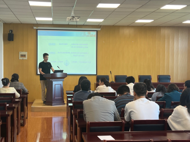公共基础课部第三党支部书记、大学英语教研室副主任(主持工作)史其慧老师根据大学英语课程定位和课程核心素养,分析不同生源的具体情况,将因材施教、培养学生英语综合能力、有效提高学生职场英语沟通和交流水平、促进学生的可持续发展理念融入课程分享。