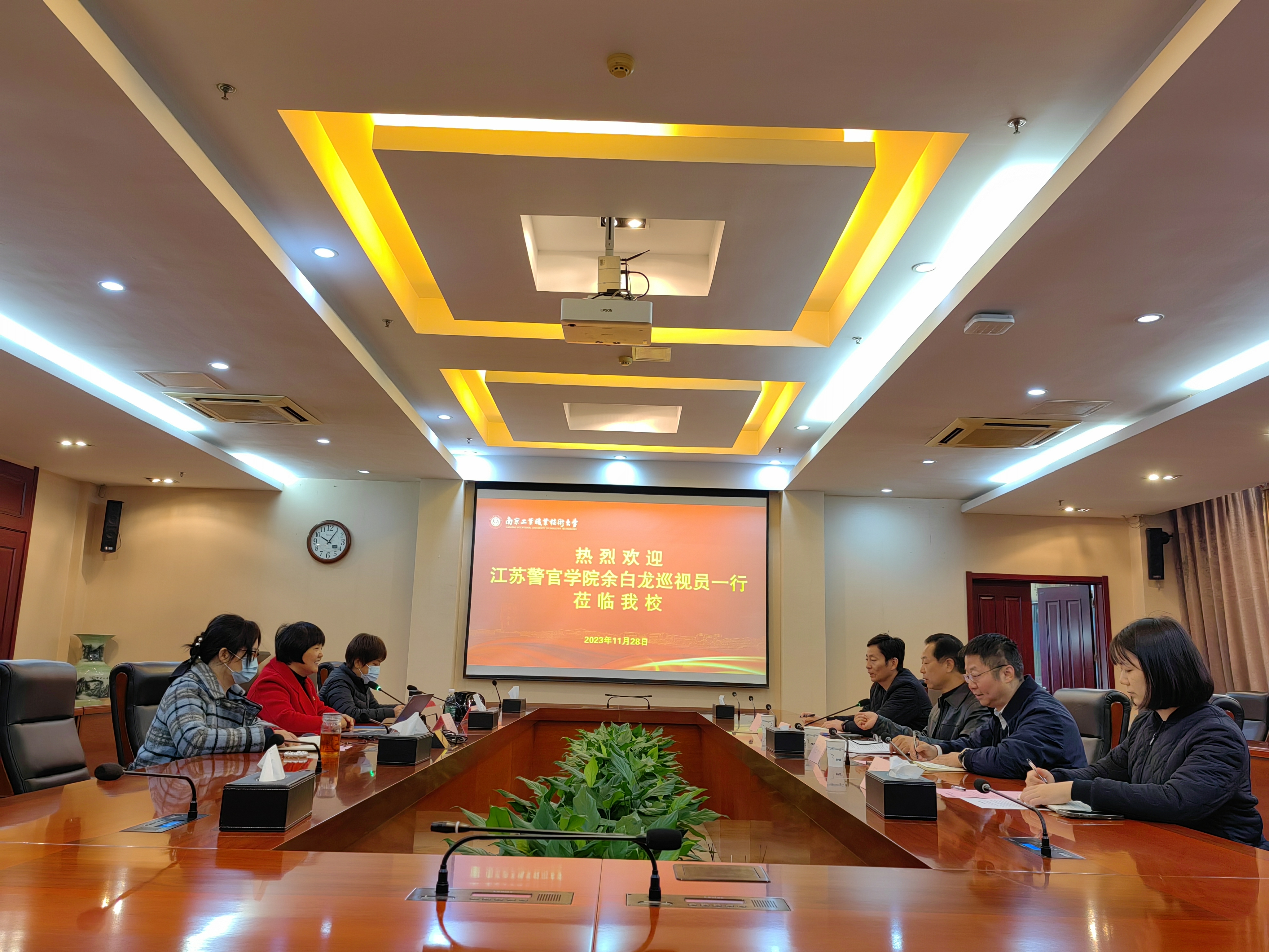 王云凤首先对江苏警官学院一行的到来表示欢迎,介绍了学校升本以来各项事业发展情况、取得的成绩,并介绍了学校目前资产管理机制机构和人员构成情况,资产绩效评价的经验做法,资产配置处置、出租出借、及无形资产管理等方面的经验做法。