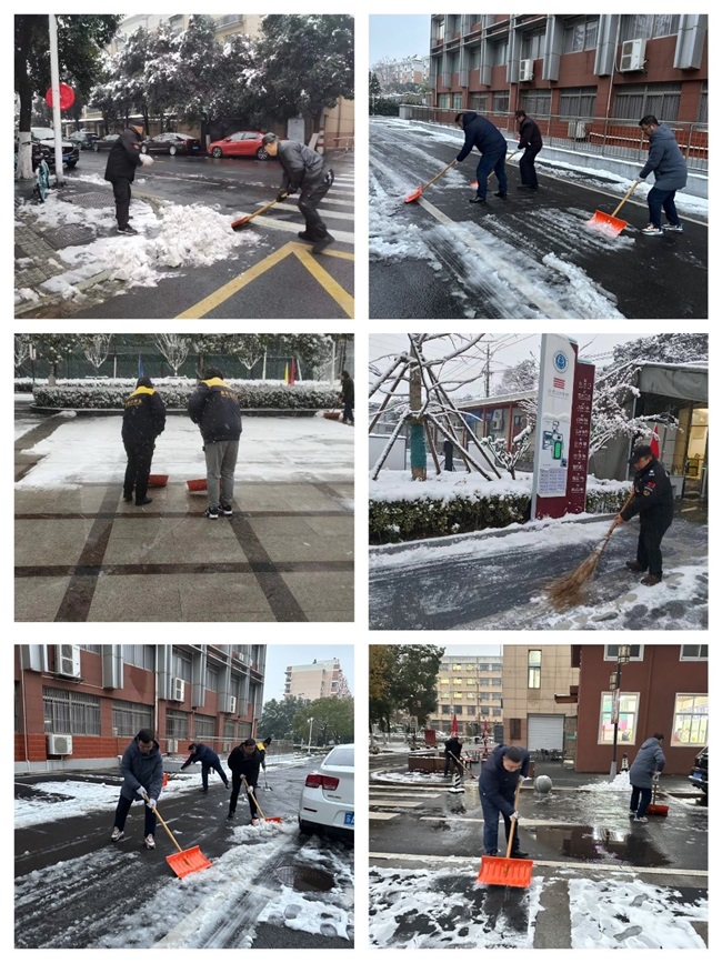 “不知庭霰今朝落,疑是林花昨夜开。”受冷空气影响,今冬初雪悄然降临南京城。洁白的雪花在装点着天堂校园、为师生带来赏玩意趣同时,也给师生出行带来诸多不便。为消除降雪带来的安全隐患,确保师生第一节课的顺利出行,12月19日天堂校区管理办公室全体教职工带领天堂校区保安、物业等条口工作人员20余人组成扫雪队伍积极投身于扫雪除冰工作中。