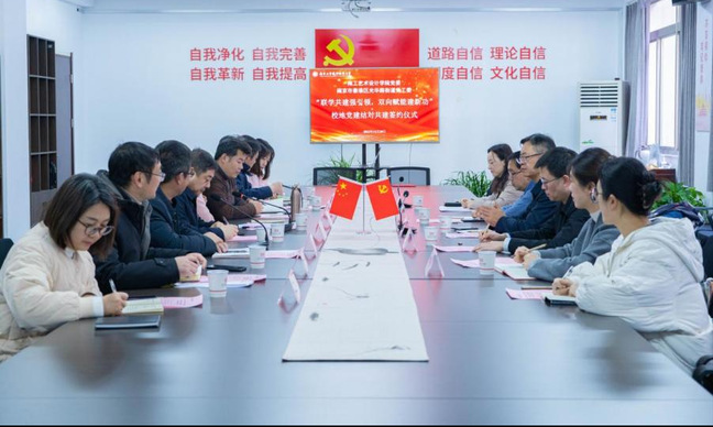 在戴新与崔新明的见证下,双方共同签订了校地党建结对共建协议书。这标志着地方政府在思想、经济、民生、文化的建设治理与学校人才培养、艺术设计成果的成功转化有机融合。双方将通过理论共学,实事共办,难题共解,发展共促的“四共”举措,促进“社区、街区、校区”三区协同发展,形成双向赋能促发展的不竭动力。