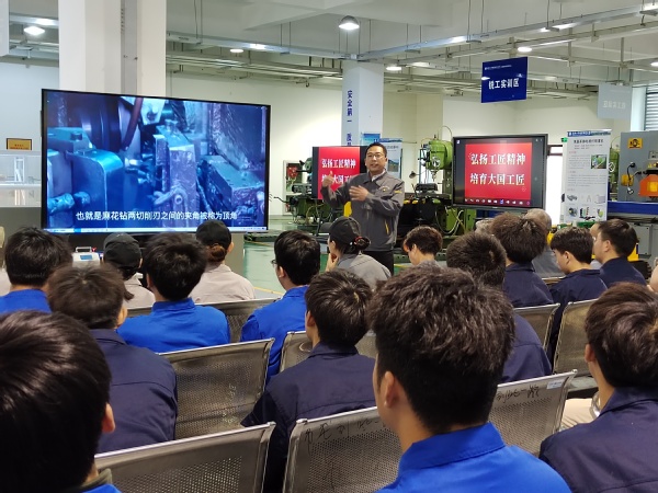 为宣传校园文化,庆祝学校建校106周年,同时结合江苏省“一技在手,一生无忧”的职教周活动主题,5月22日工程技术实训中心数控加工技能大师工作室组织开展了“锋芒所向 无孔不入-麻花钻刃磨金工小课堂”实践活动,机械工程相关专业师生共50余人参加了此次活动。活动由工程中心副主任许璟主持。