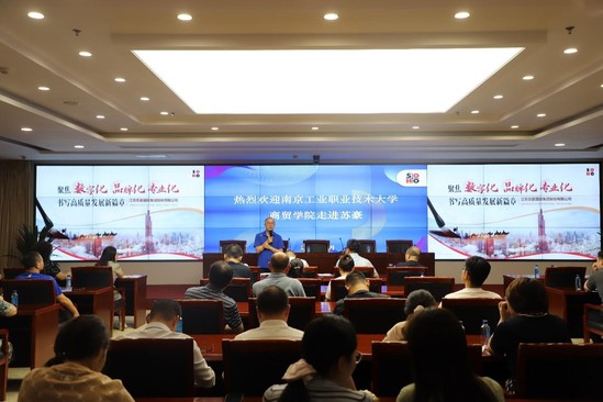 邢益军介绍了商务贸易学院近年来的人才培养情况,同时代表学院对苏豪集团近年来对学院精英班人才培养、教学资源开发、学生实习和就业等方面给予的帮助表达了诚挚的感谢,同时希望校企进一步加深合作,搭建校企合作共同体,画好双向赋能“同心圆”。