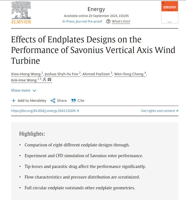 近期,pg官网艺术设计学院产品设计系王晓航副教授作为第一作者,以pg电子中国官方网站为第一完成单位,在国际能源工程领域顶刊《Energy》发表题为“Effects of Endplate Designs on the Performance of Savonius Vertical Axis Wind Turbine(端板设计对Savonius垂直轴风力机性能的影响)”的研究论文,由Elsevier出版。《Energy》期刊为中科院、JCR双一区Top期刊,2023年影响因子9.0。