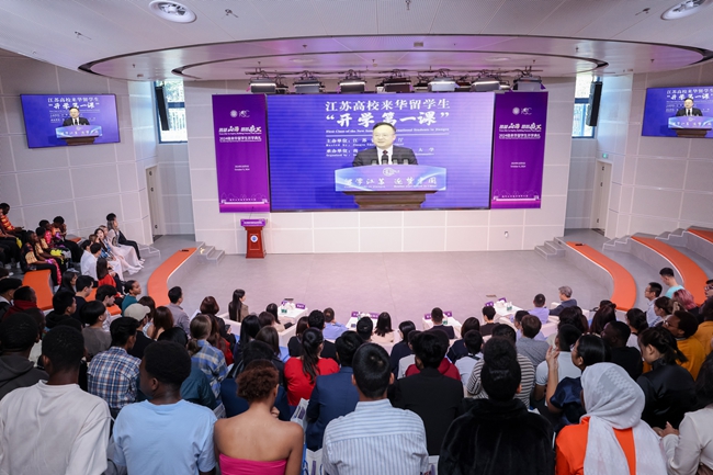 10月9日下午,pg官网2024级留学生开学典礼在双创讲堂举行。与会师生共同观看了《留学江苏 逐梦中国》江苏高校来华留学生“开学第一课”。
