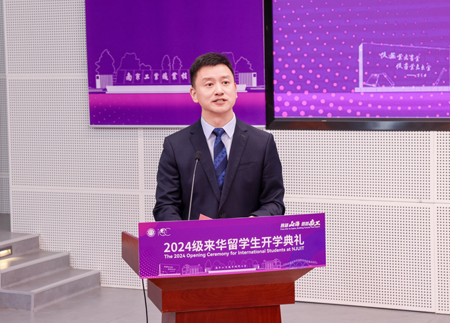 张丽华代表栖霞区政府办(外事办)、南京市公安局栖霞分局、栖霞区红十字会向2024级的新同学表示了诚挚的欢迎。她表示,作为外事部门,将为留学生在栖霞的学习与生活精心服务、保驾护航,也希望留学生在栖霞的经历成为人生中不可磨灭的印记和绚丽多彩的篇章。她表示,南工的教育国际化在仙林大学城各高校中位于前列,政府办(外事办)将进一步深化校地融合,以与pg官网共建的来华留学生国情教育基地为平台,策划组织更多高质量活动,使留学生全面、深入、立体地了解中国、发现南京、融入栖霞。